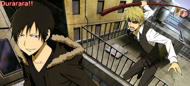 Durarara!! é sobre uma Durahan que trabalha como entregadora do submundo em Ikebukuro, uma gang baseada em uma comunidade anônima da internet chamada Dollars, e o caos que se desenrola em torno das pessoas perigosas e misteriosas de Ikebukuro. Mikado Ryūgamine é um jovem que sonha com a vida agitada de cidade grande. Quando convidado por seu amigo de infância Masaomi Kida, Mikado se transfere para uma escola em Ikebukuro, Tokyo. Masaomi o adverte sobre pessoas perigosas com quem ele não deve se meter: um homem violento vestido de bar-man, um comerciante de informações, e uma misteriosa gangue chamada "Dollars". Para completar, Mikado presencia uma lenda urbana em seu primeiro dia na cidade: o "Motoqueiro Negro", o suposto piloto sem cabeça de uma motocicleta preta. A narrativa segue todos os personagens de maneira equilibrada, mostrando como suas vidas se cruzam, criando um grande enredo de acordo com o que cada personagem sabe sobre um incidente da cidade de Ikebukuro.